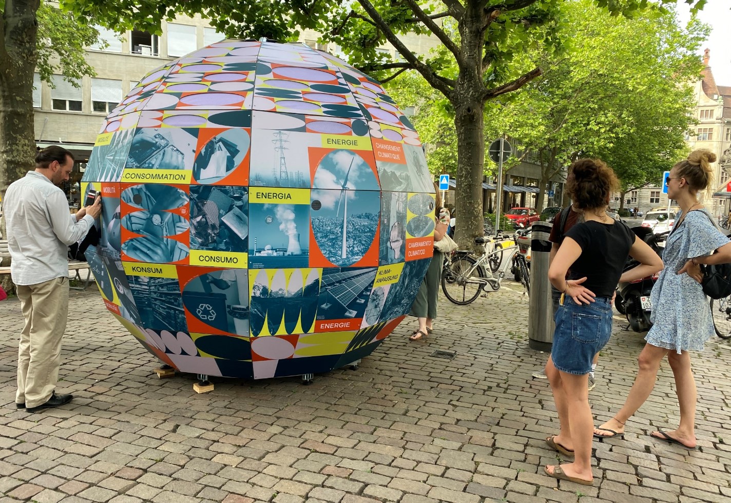The Climate Ball is a mobile, outdoors installation that interactively raises awareness about the climate crisis and solutions while collecting opinions from visitors. In the summer of 2024, the Climate Ball will tour Ticino. The three-meter sphere has already been touring in Switzerland since June 2022 and has visited 17 locations in German-speaking Switzerland and three locations in French-speaking Switzerland. The Climate Ball is publicly accessible free of charge and accompanied by events. For more information, visit www.klimaball.ch/klimaball-english.