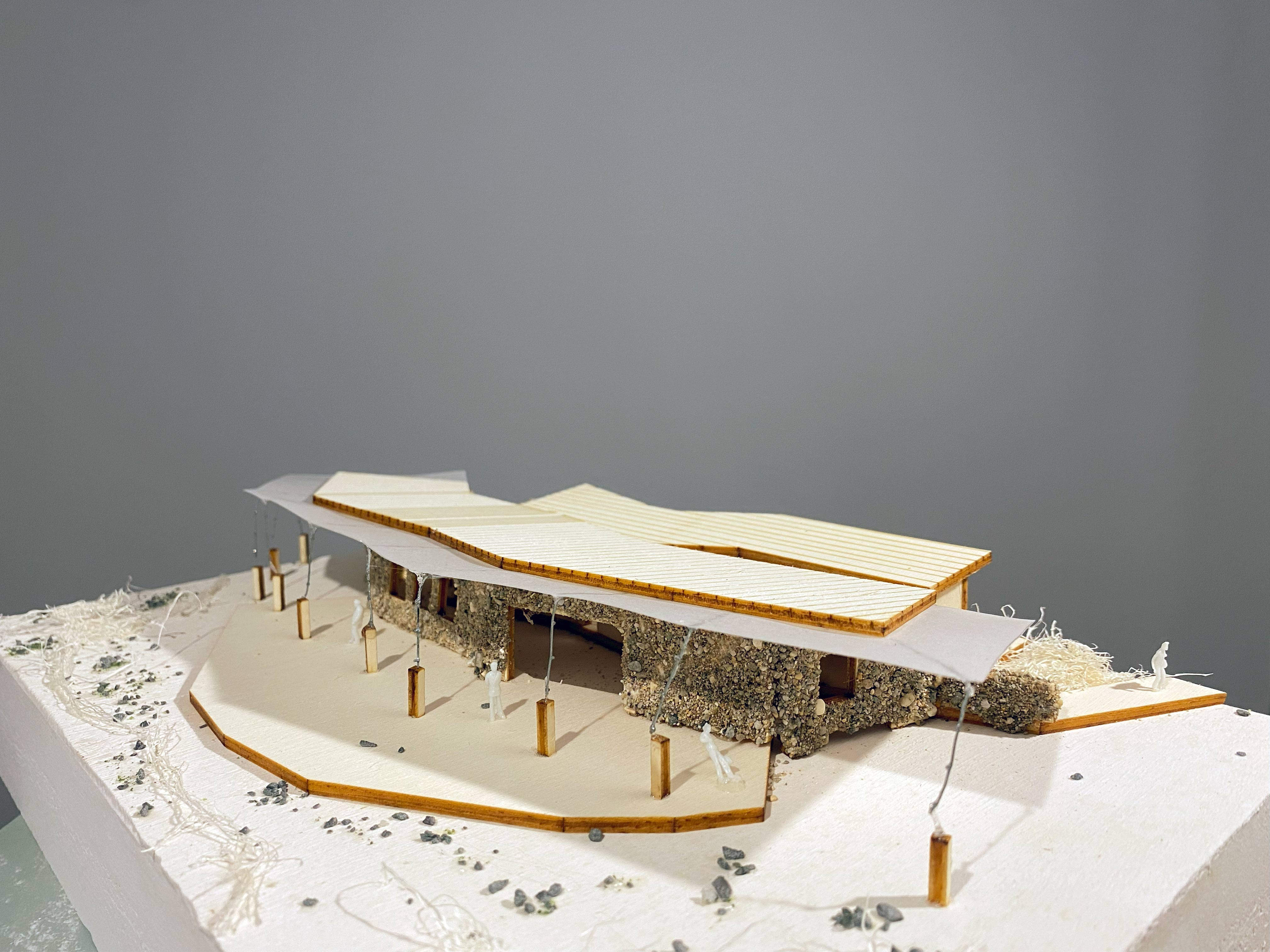 The project is located within a disused quarry site, it tells the story of how local people have shaped and sustained themselves from the land for generations. In designing a space that is an extension of the landscape it is placed within, a node that is a part of the surrounding environment, ‘plugging in’ to the ecological system of mutually beneficial elements, the construction of the space and its integrated systems aims to alleviate human contamination on the site (from past quarry use), and educate visitors to allow for a reciprocal relationship between human and site. The site in question is set to erode in the next 50 years, therefore the project is designed for adaptability and deconstructability of all elements including ‘services’ (things that cant be left onsite when unused). The remaining ‘shell’ of the building is constructed entirely out of earth extracted from the site, and is suitable to be left to change with the changing climate. This creates a tangible representation of the realities of coastal erosion, an educational tool for the public, grounding an understanding of the effects of human impact and climate change, recognizing it as a lived experience that needs adaptability, rather than a scientific phenomenon.