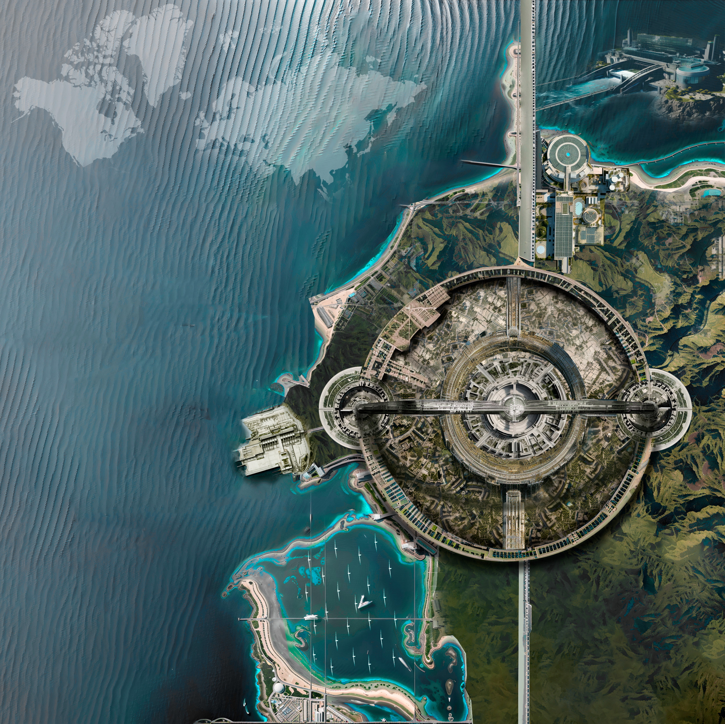 One of the main functions of the ground ring is energy generation from renewable sources such as wind, solar, and geothermal energy. Renewable energy plants and devices will be installed in different areas of the ring, leveraging climatic and geographical conditions to maximize efficiency.